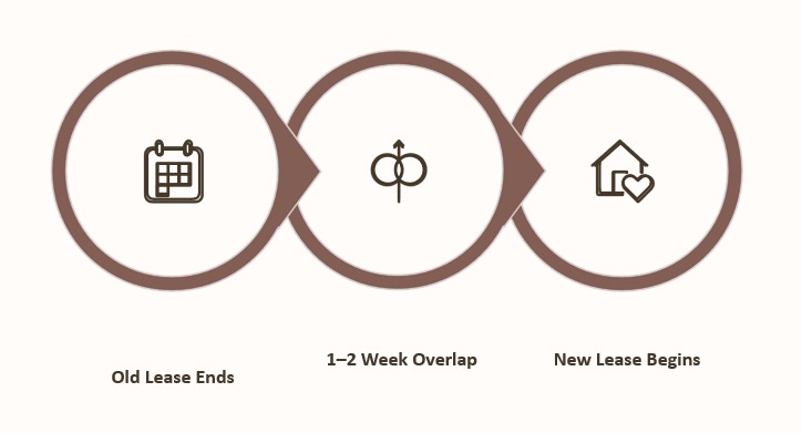 Aim for a 1-2 week overlap between leases to dramatically reduce moving stress and pressure.